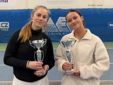 Vítězky čtyřhry Floortje Chrisstoffels a Nikol Jarolímková